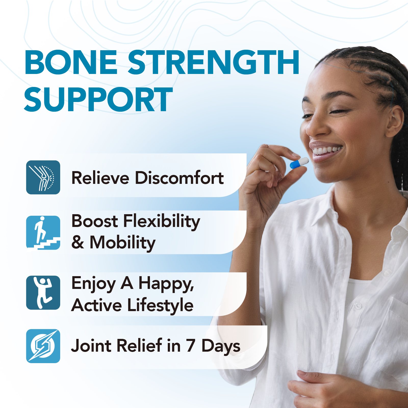 ✅ Easy-to-Take Daily Capsule for Long-Lasting Support – One small, easy-to-swallow capsule per day provides long-term joint and bone health benefits, helping you stay active and pain-free.