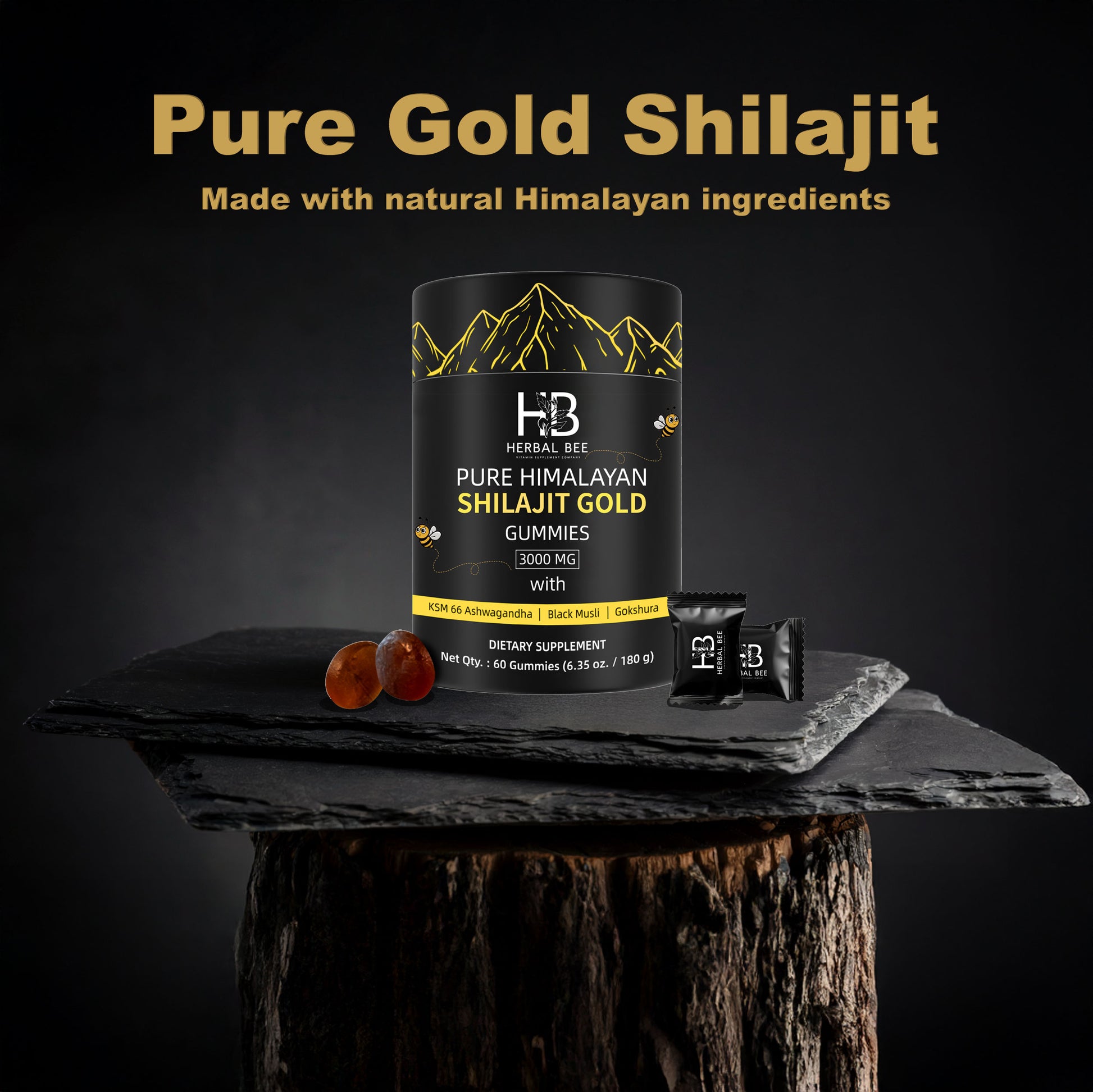 - PURE HIMALAYAN SHILAJIT: Sourced from 18,000 ft above sea level in the Himalayas, Herbal Bee Pure Himalayan Shilajit Gold Gummy ensures a pure, organic and potent dose of this sacred resin, traditionally used for its revitalizing properties. Herbal Bee Shilajit Gold Gummies will give you the energy, health and wellness you need.
